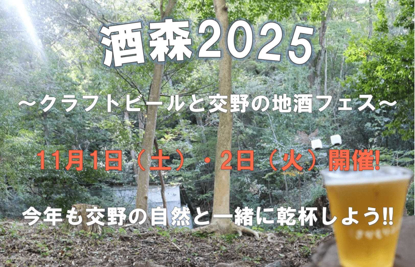 2025年11月1日(土)と2日(日)の2日間、交野市にある「星の里いわふね」にて『第3回 酒森2025〜クラフトビールと交野の地酒フェス〜』が開催されます。
