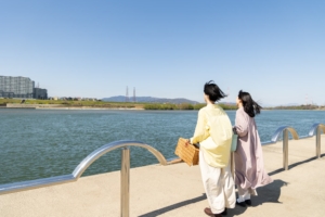 ・近くのパン屋さんでパンを買って、淀川河川敷で食べたり、まわりを気にせずのんびり過ごせます。