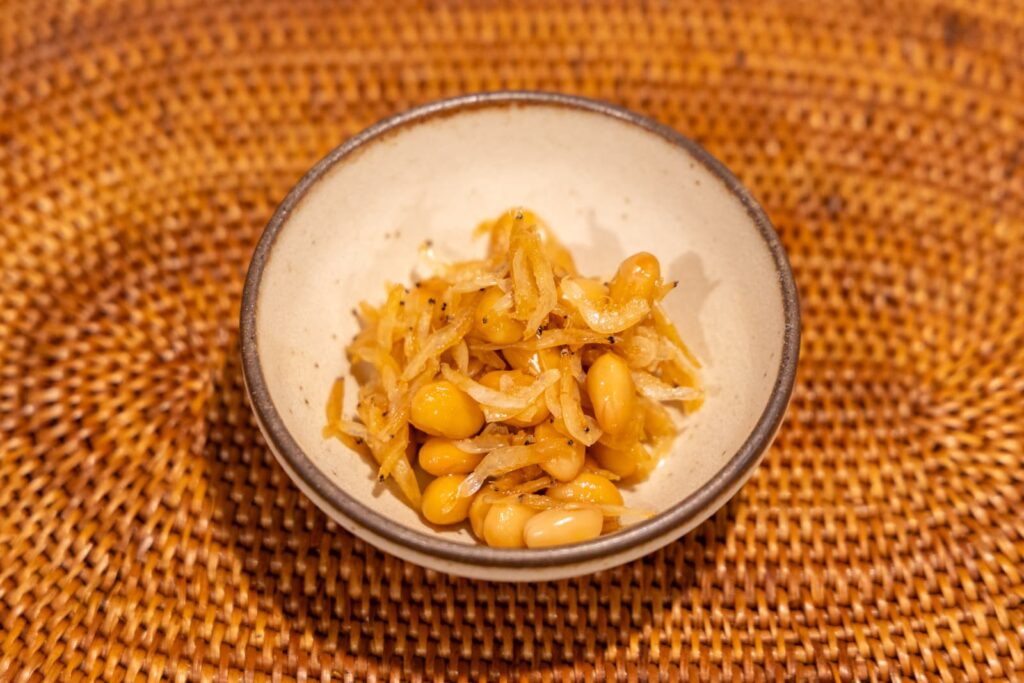 淀川でとれた川エビと大豆を煮た「じゃこ豆」は、保存食として作られていました。