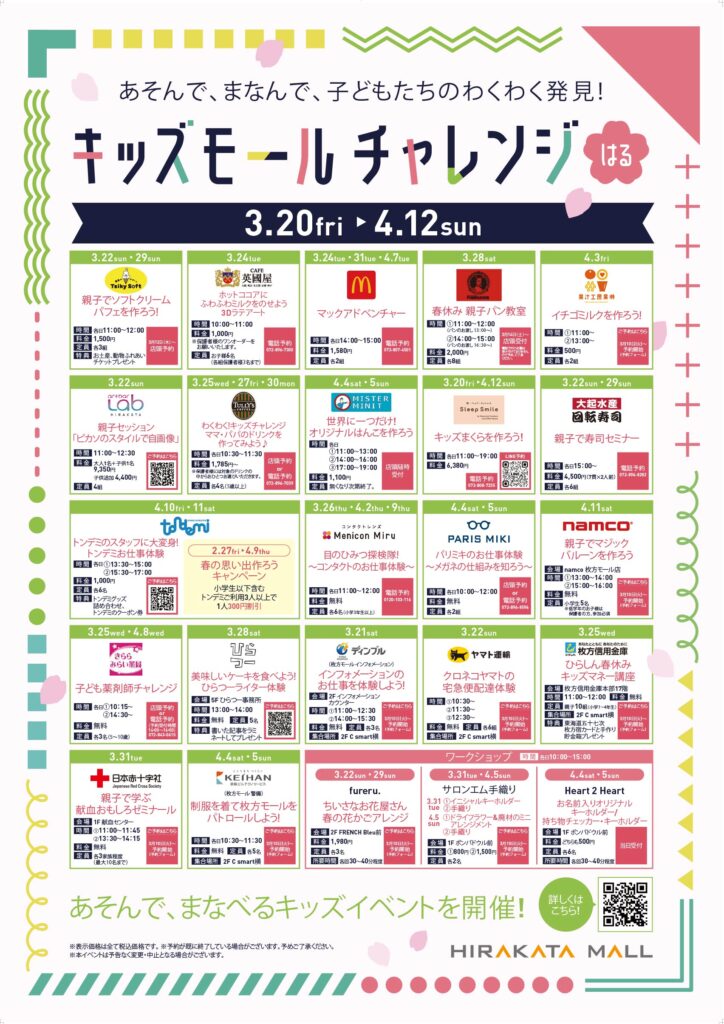 春休みだけの特別なチャレンジを、枚方モールで楽しんでみてくださいね♪