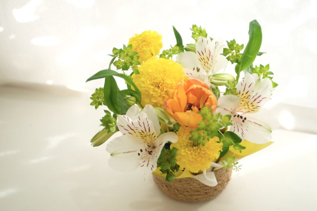 ちいさなお花屋さん 春の花かごアレンジ