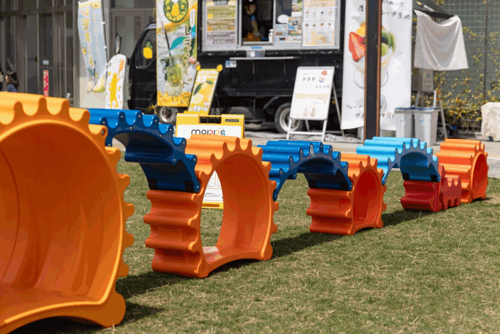 移動式遊具「モップス」が芝生広場に遊具が登場!(設置期間は10/27(月)~11 月末ごろまで)