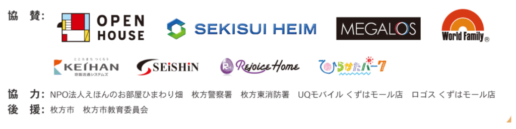協力:NPO 法人えほんのお部屋ひまわり畑・枚方警察署・枚方東消防署・UQモバイルくずはモール店・ロゴス くずはモール店