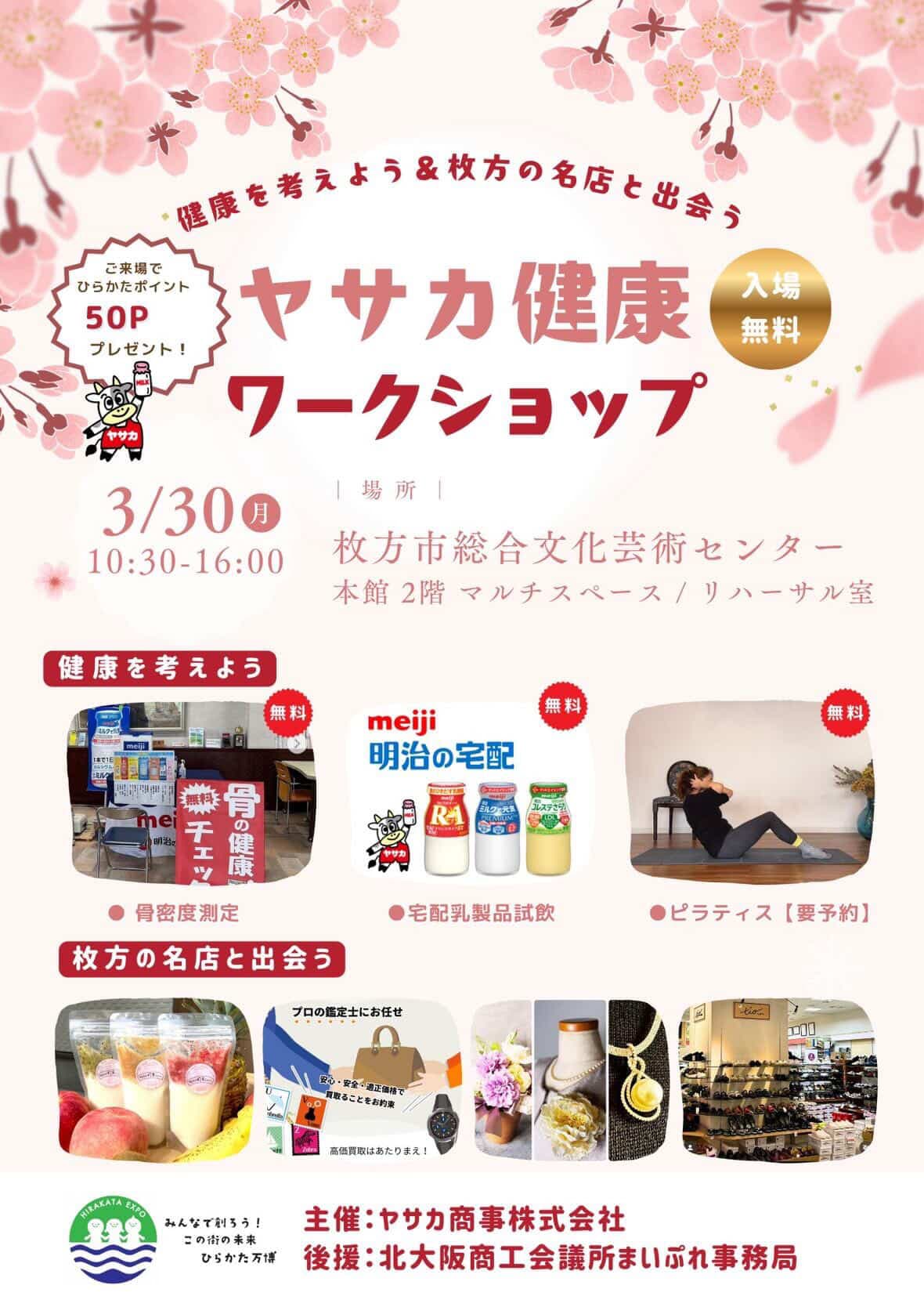 2026年3月30日(月)に、枚方市総合文化芸術センターにて健康ワークショップイベント「ヤサカ健康ワークショップ」が開催されます。
