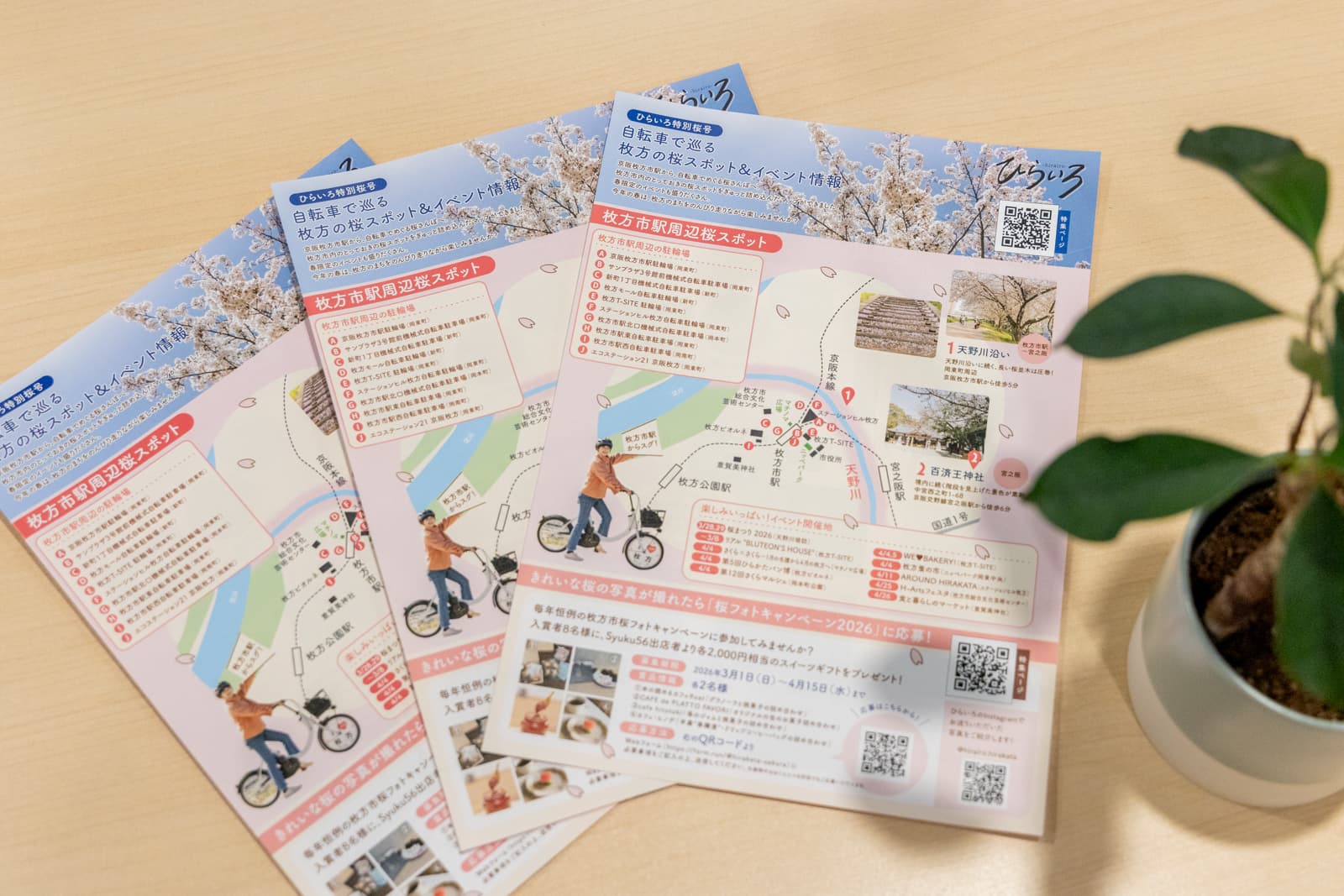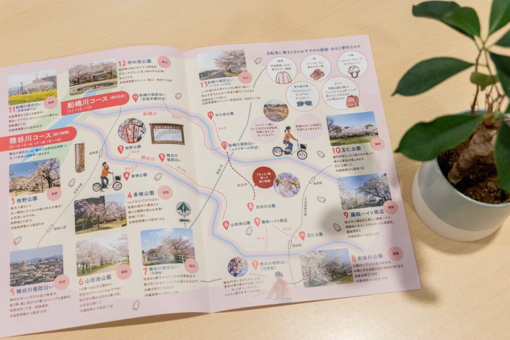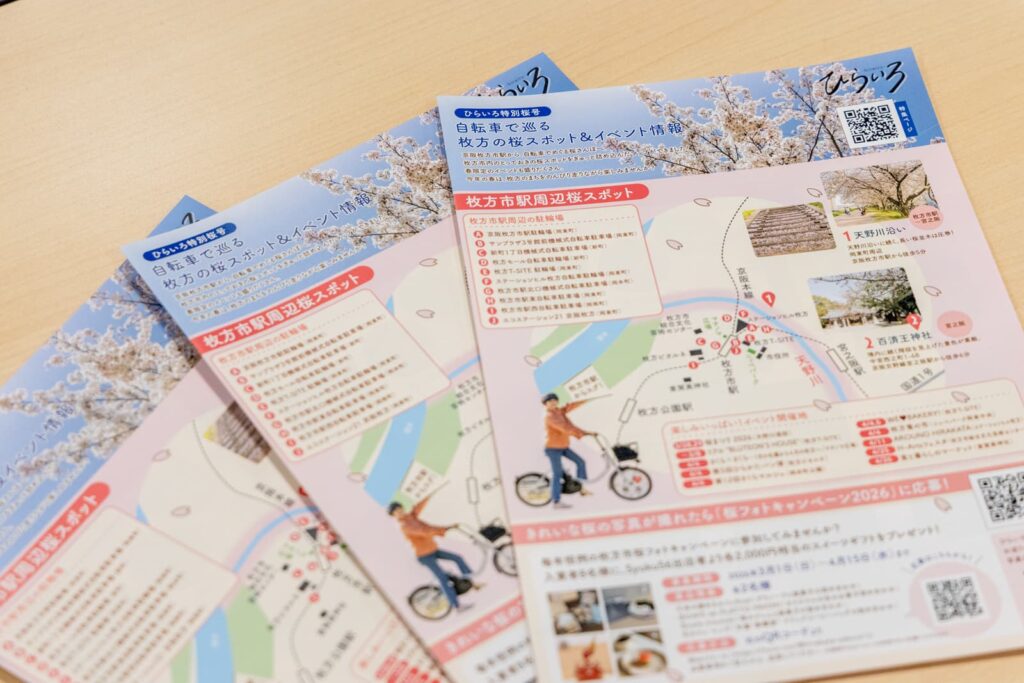 今回の「ひらいろ特別桜号」は、枚方の桜スポットを“自転車でめぐる”サイクリングマップです。
