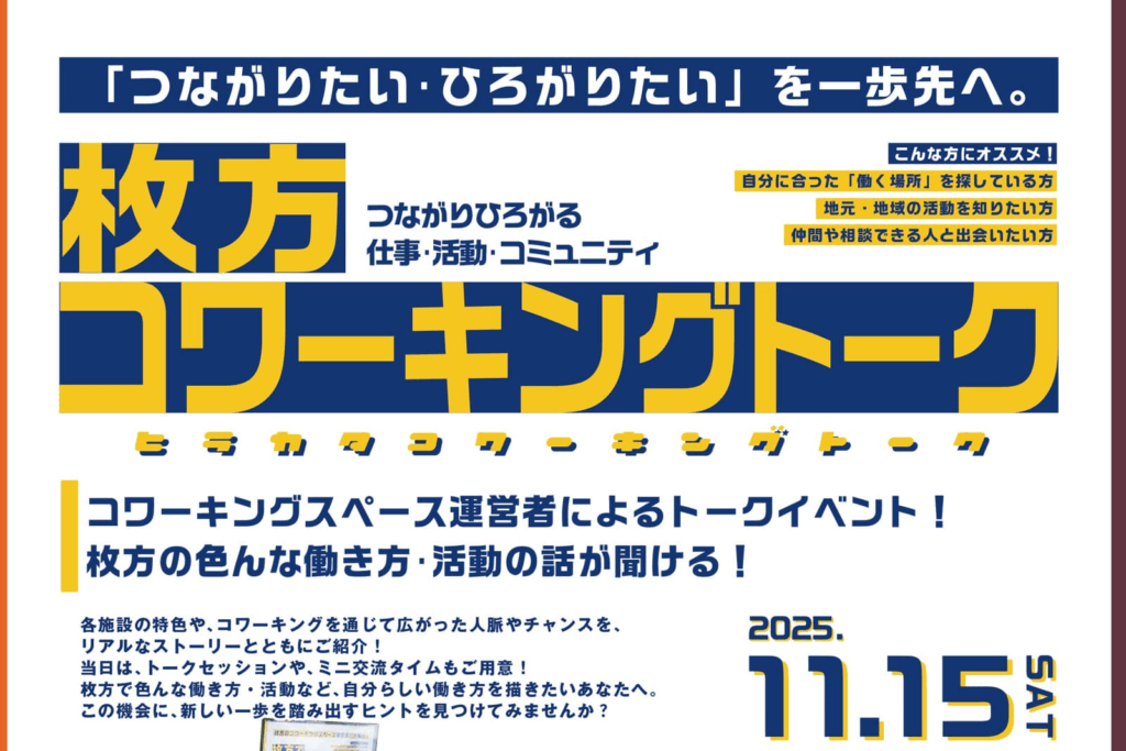 なにか始めたい!こんな働き方いいかも!人と仕事がつながる「枚方コワーキングトーク」開…