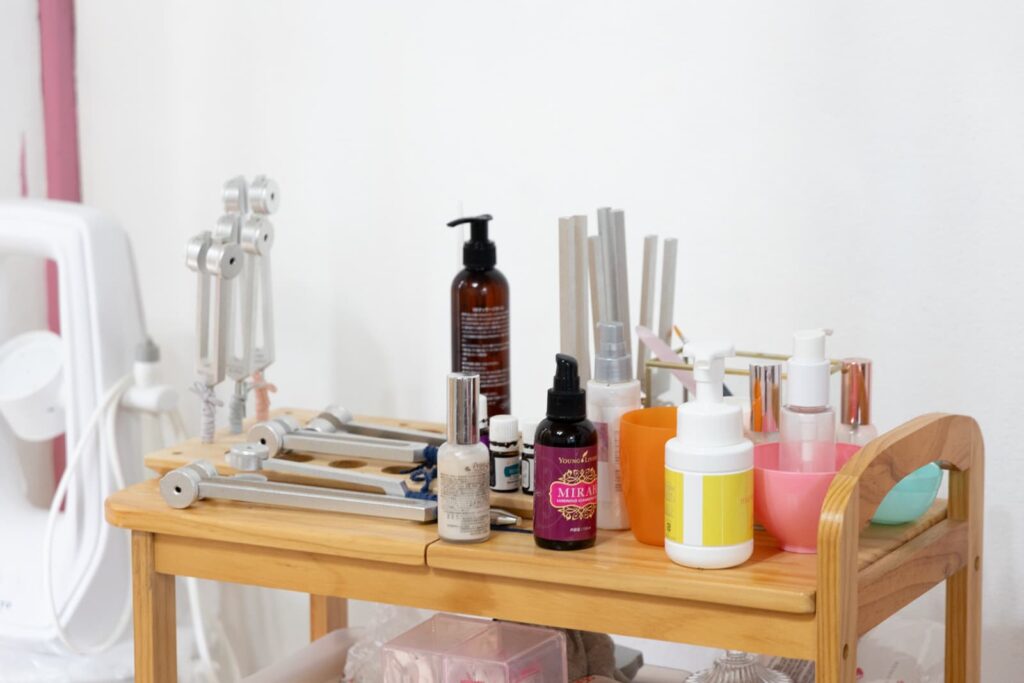 ジャンルとしては、占い、ワークショップ、アロマなどですね。もちろんエステの体験——短い時間でのフェイシャル体験や、イベント限定で「耳ツボ音叉」も取り入れています。