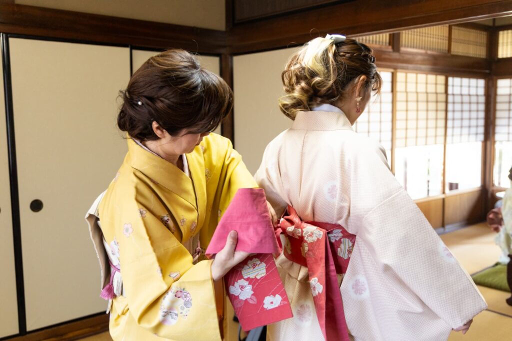 学生さんにも人気で、関西外国語大学のボランティア部の学生さんが着てくださったこともあります。若い世代の方が着物に興味を持ってくれるのは、とても嬉しいことですね。「着たいけど自分では着られない」という方に、まずは体験していただく場を提供しています。。