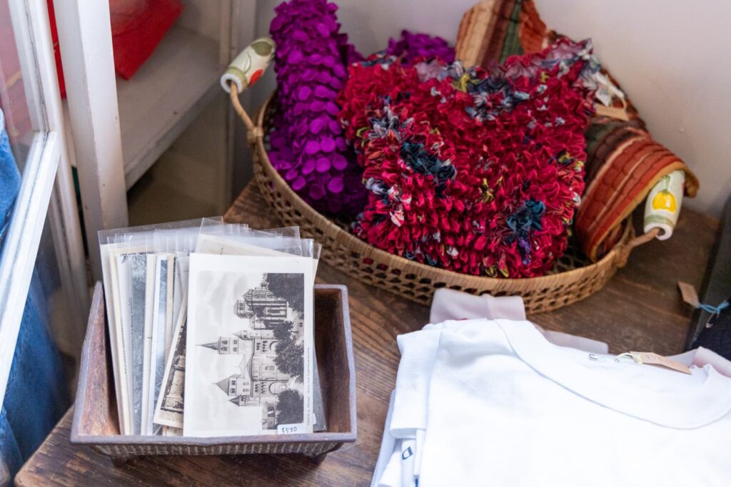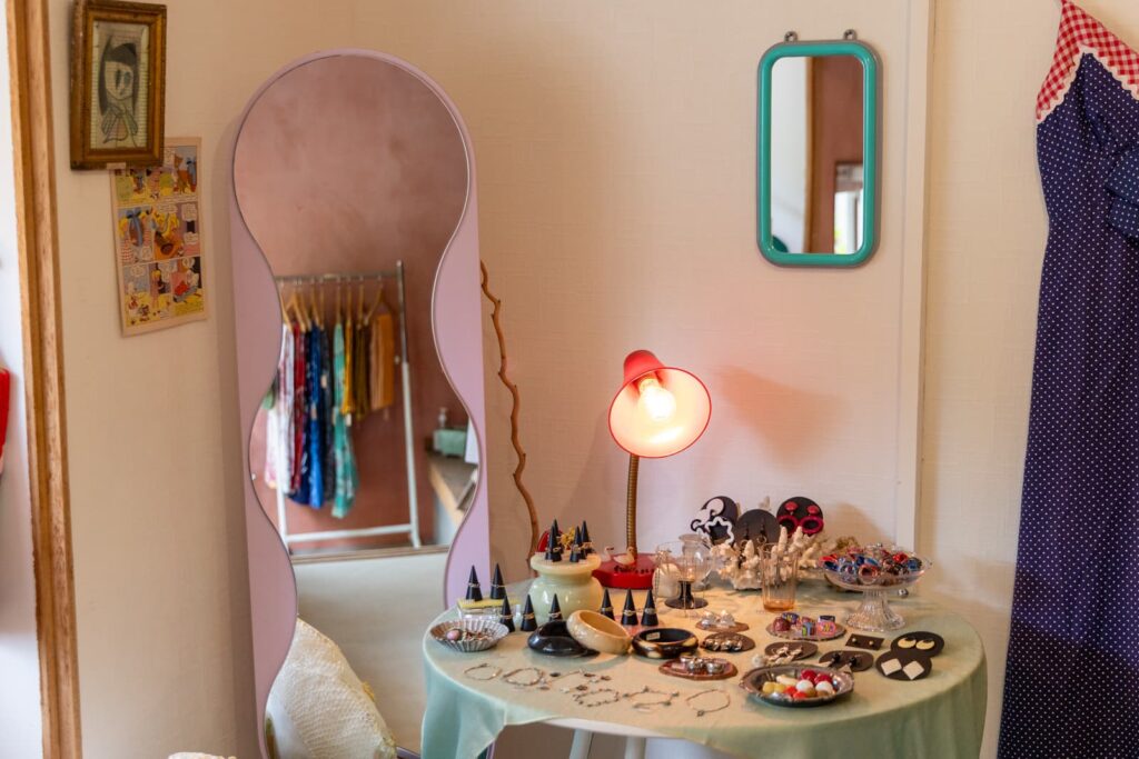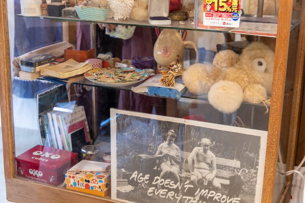 水面回廊のそばで、明るくラフなヴィンテージショップ