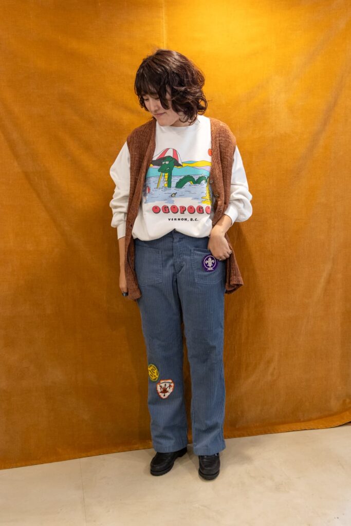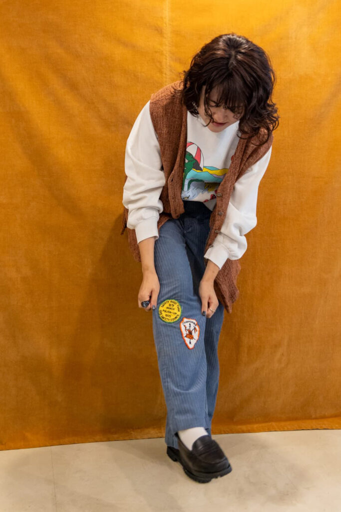 パンツに貼られたワッペンは元の持ち主がつけたものなんだそうです。いい感じのワンポイントになってますね!