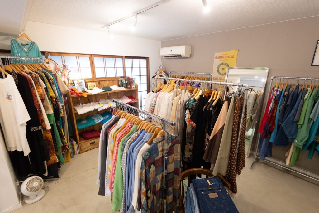 70年代から90年代のレディースをメインに扱い、カラフルでちょっと個性の強いものをセレクト。