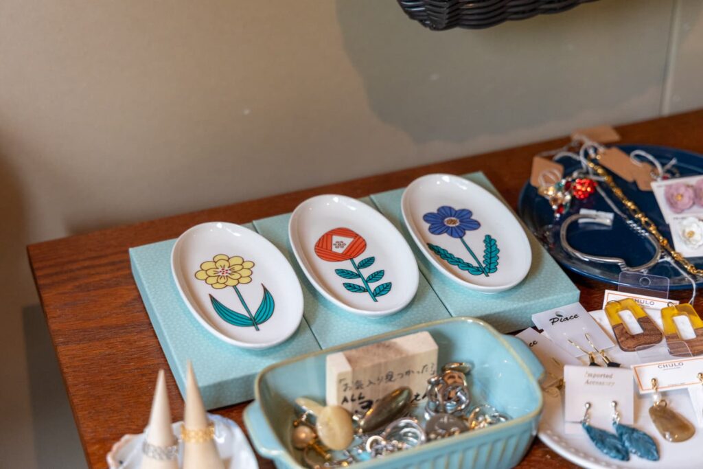 特定のジャンルに囚われず、来てくれた方には「あ、いいの見つけた!」と思ってもらえるようにと、雑貨、観葉植物、食器、アクセサリー、カバンなど、幅広く取り揃えています。