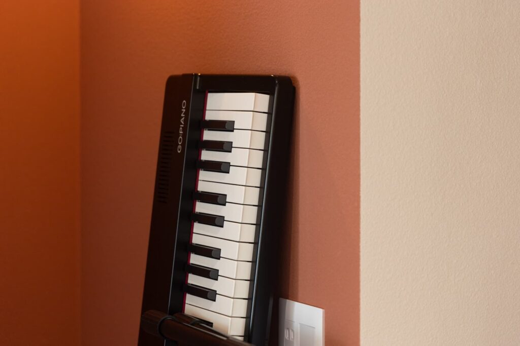 お店の中にはところどころに楽器が。
