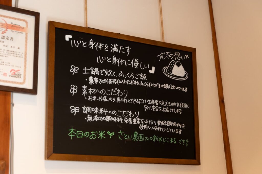 おむすびに使う具材や調味料は「安心して食べられるもの」にこだわり、塩麹や醤油麹などの発酵食品をベースに、味噌や梅干し、干物なども厳選されています。