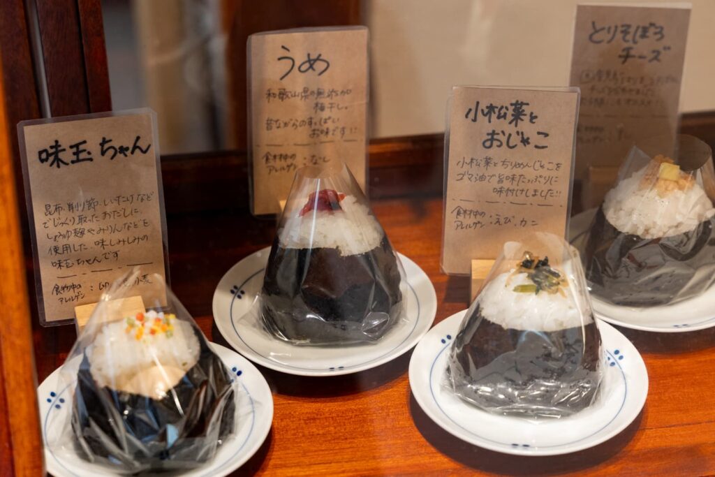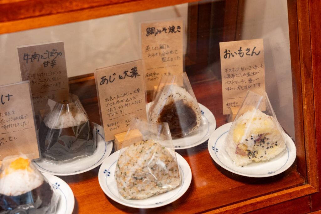 木製のショーケースには、ふんわりとお米の香りがただようおむすびが並び、