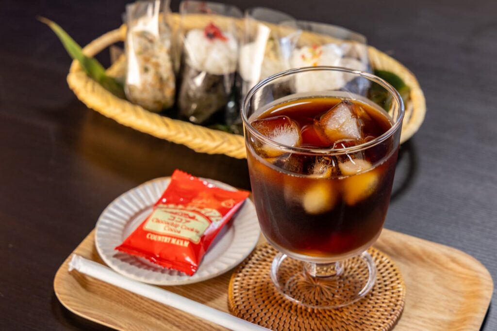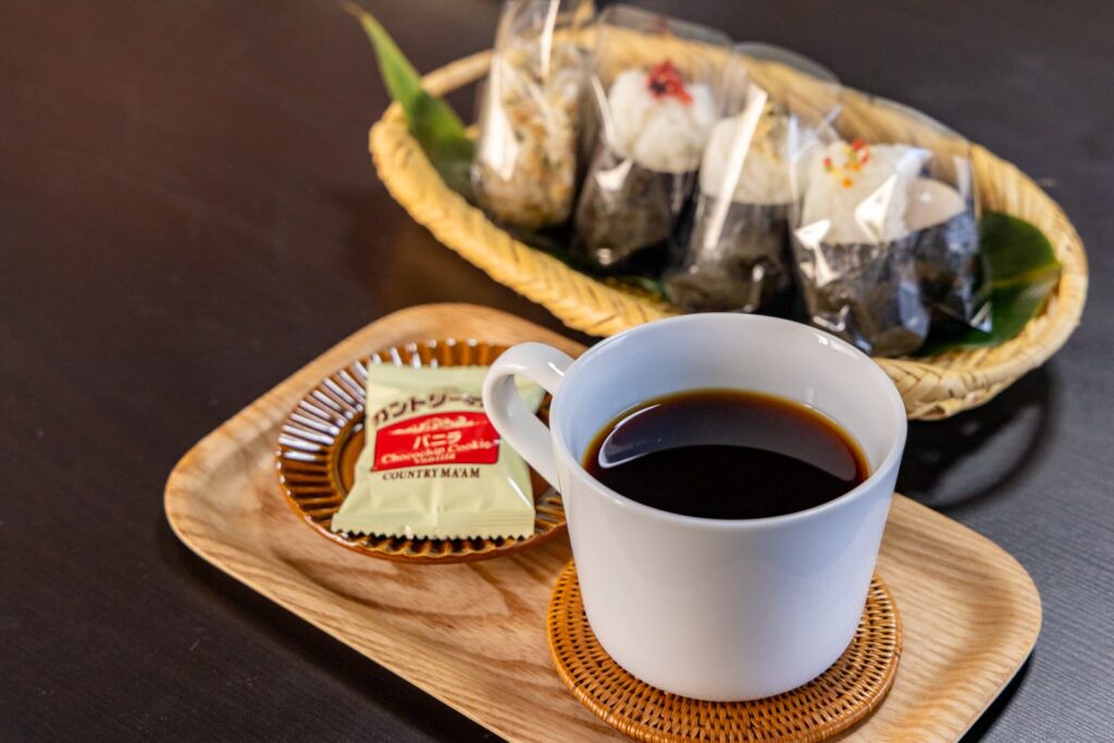 おむすびとコーヒーとは一見意外な組み合わせのようですが、こちらは長尾にあるマホロバ珈琲堂さんにお願いして、5ヶ国6種類の豆をバランスよくブレンドした「おむすびにも合うコーヒー」を作っていただいているそうです。