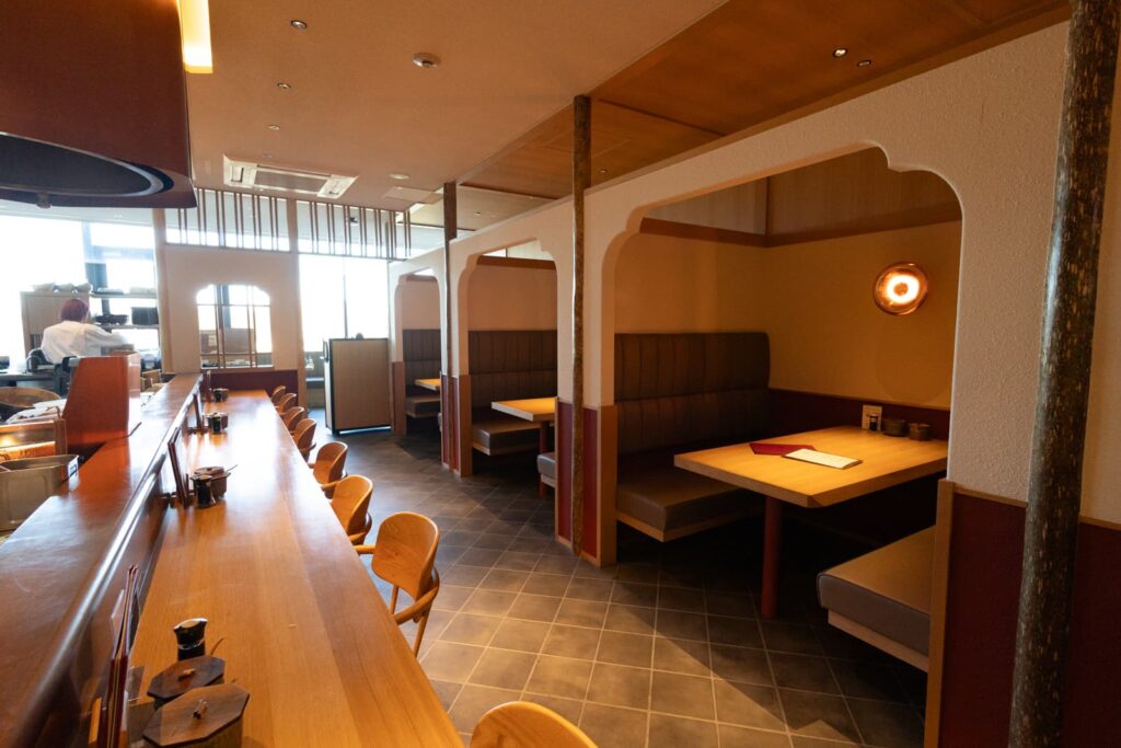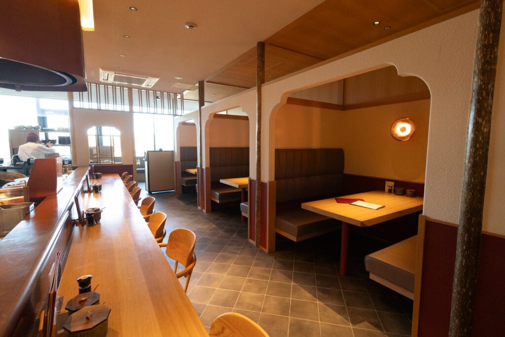 空間デザインにこだわっている店内は、カウンター、半個室、窓際のテーブル席などシーンに応じて利用でき、ゆったり食事ができます。