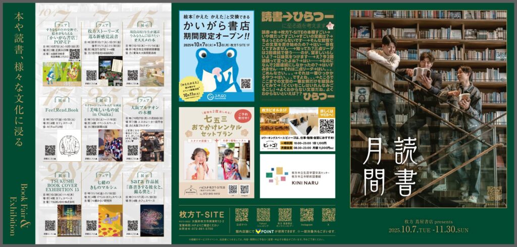 2025年10月7日から11月30日まで、枚方T-SITEにて「読書月間~本や読書、様々な文化に浸る~」が開催されます。秋のひととき、本や言葉を通して“知る・感じる・つながる”時間を楽しみませんか。