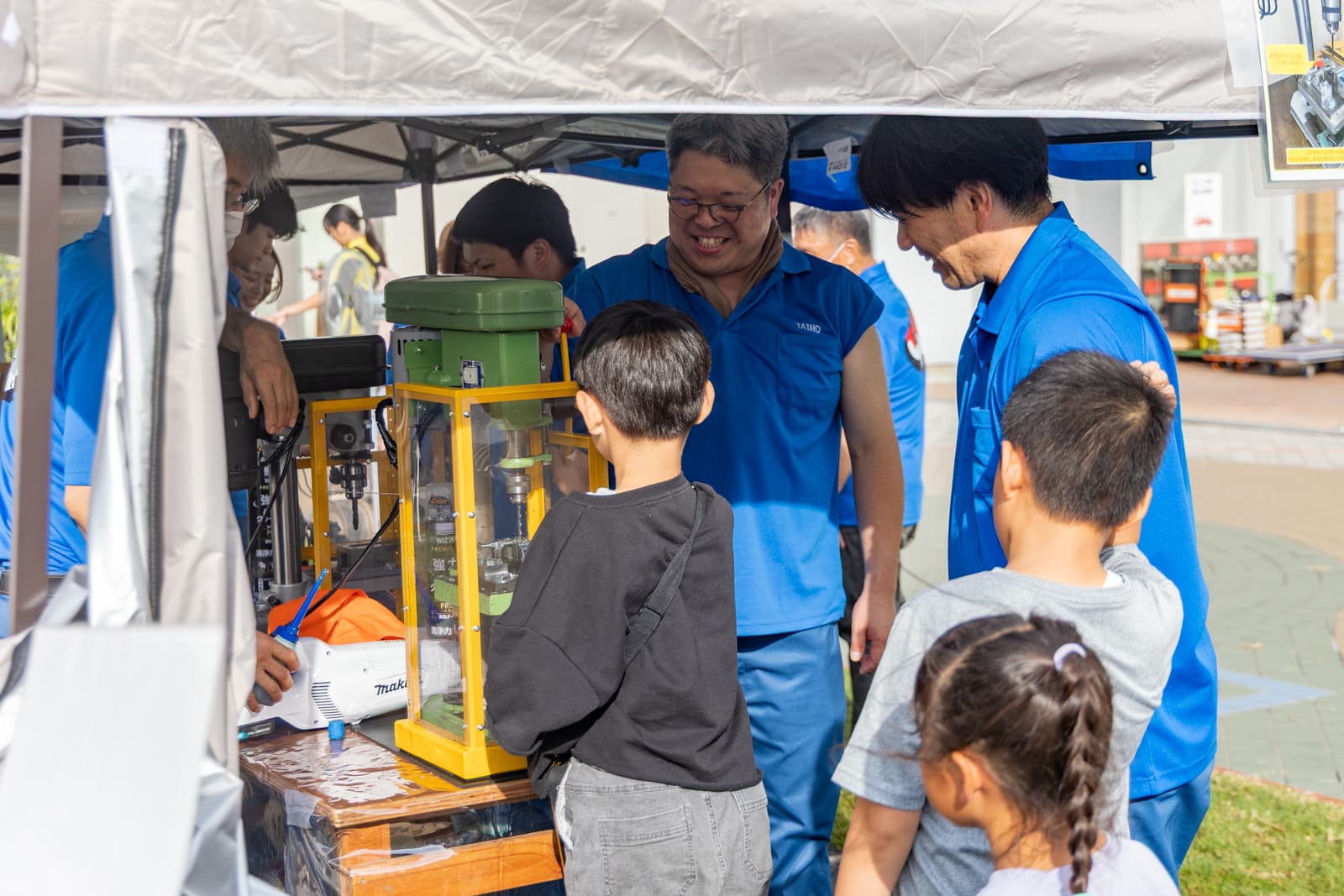 大型重機の特大部品から小さなネジまで、様々な金属を加工している「大豊製作所」のブースも毎回大人気ブース!