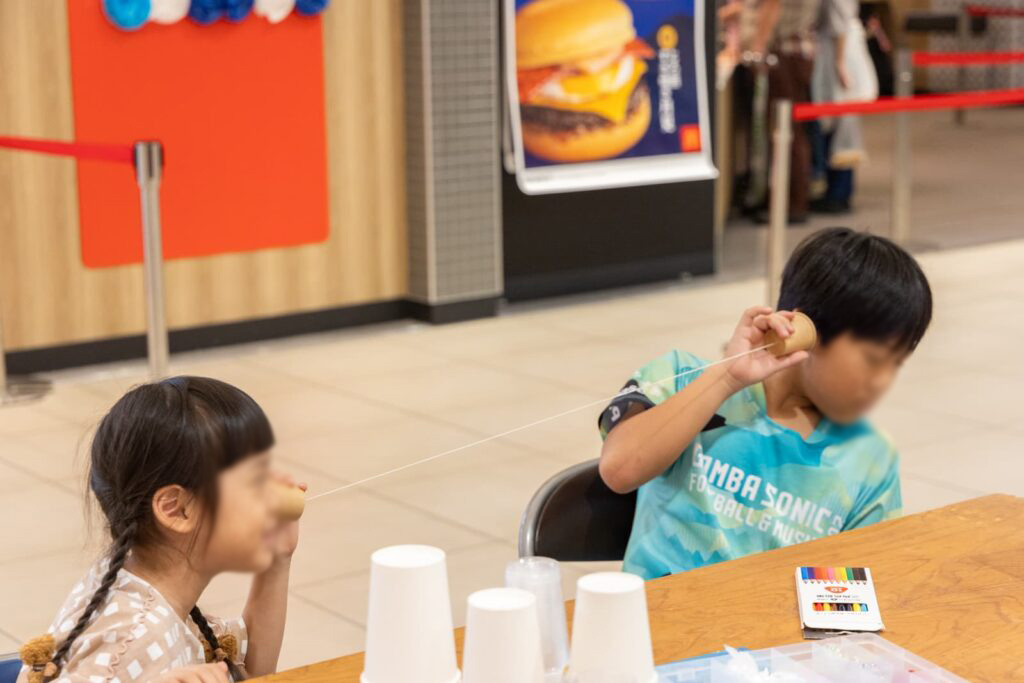 糸で本当に伝わるの?と、音の不思議をワクワクしたようすで体感している子どもたちの姿はとても楽しそうでした!
