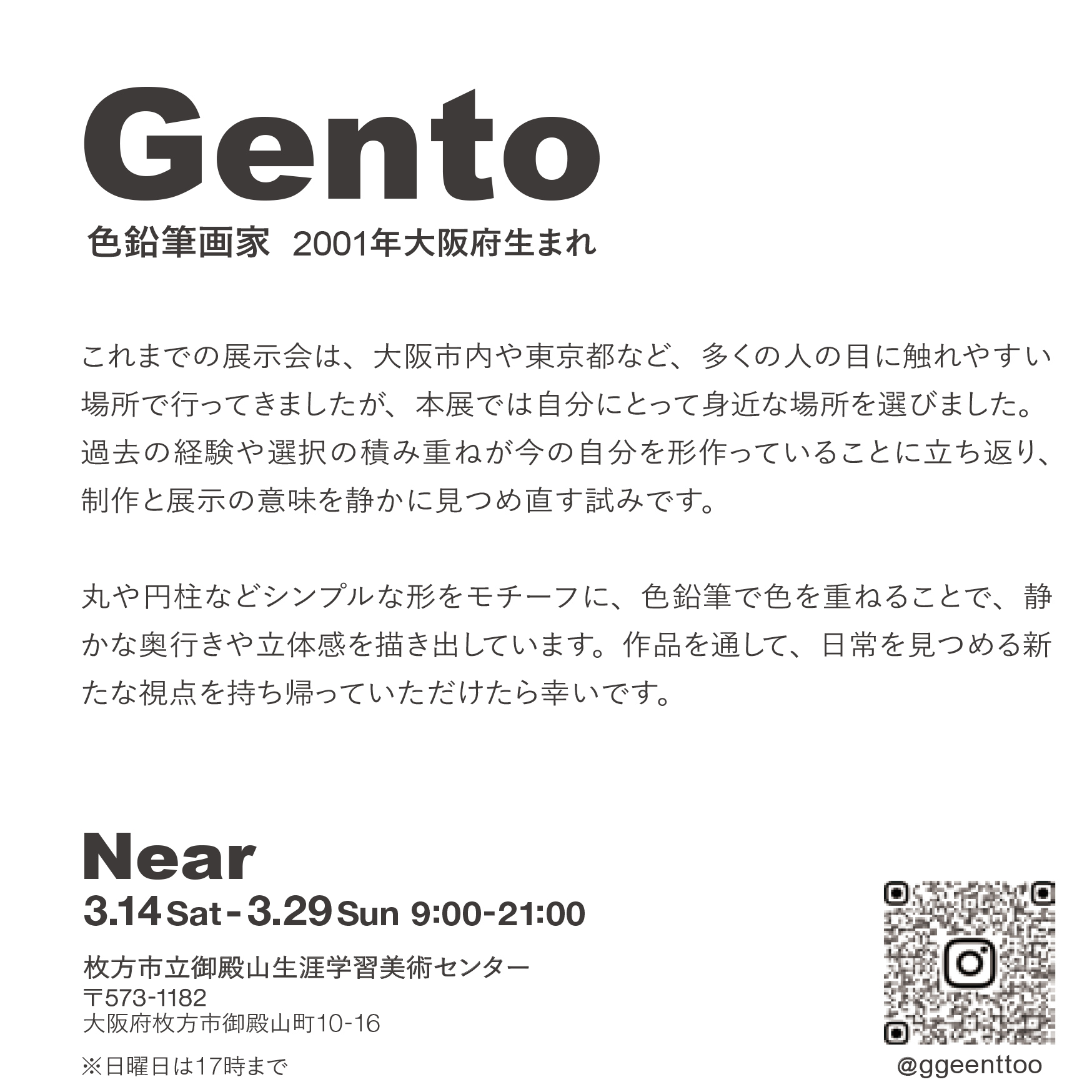 2026年3月14日(土)〜29日(日)の期間中、御殿山生涯学習美術センターにて、色鉛筆画家Gentoの個展「Near」が開催されます。