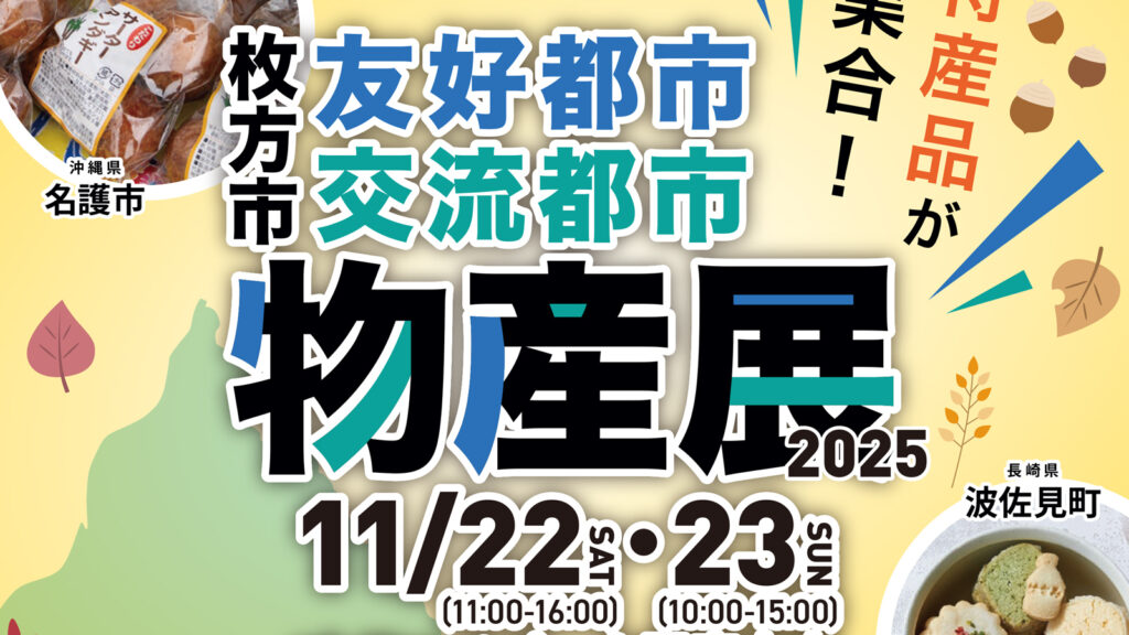 全国のうまいもん・ええもんが枚方に大集合!秋のグルメ&物産品!「枚方市友好・交流都市物産展」開催〈11/22(土)・23(日) @ニッペパーク岡東中央〉