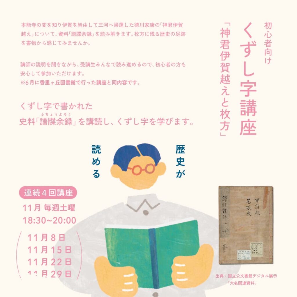はじめてでも大丈夫!くずし字で学ぶ家康と枚方の歩み「くずし字講座」開催〈 11月毎週土曜@枚方市立生涯学習交流センター〉【枚方店舗ニュース】