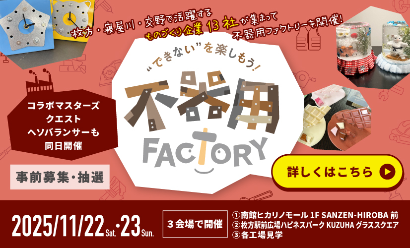 \モノづくりっておもしろい!/工場と駅前広場でW開催!親子で楽しむモノづくりワークショップ「不器用ファクトリー」 2025年10月18日(土)・19日(日)に、枚方を中心と... -