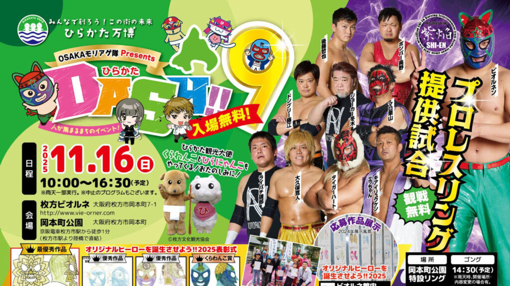 プロレスにお笑い、グルメも満載!家族でワクワク♪「ひらかたDASH!! 9」開催〈11/16(日)〜@枚方ビオルネなど〉